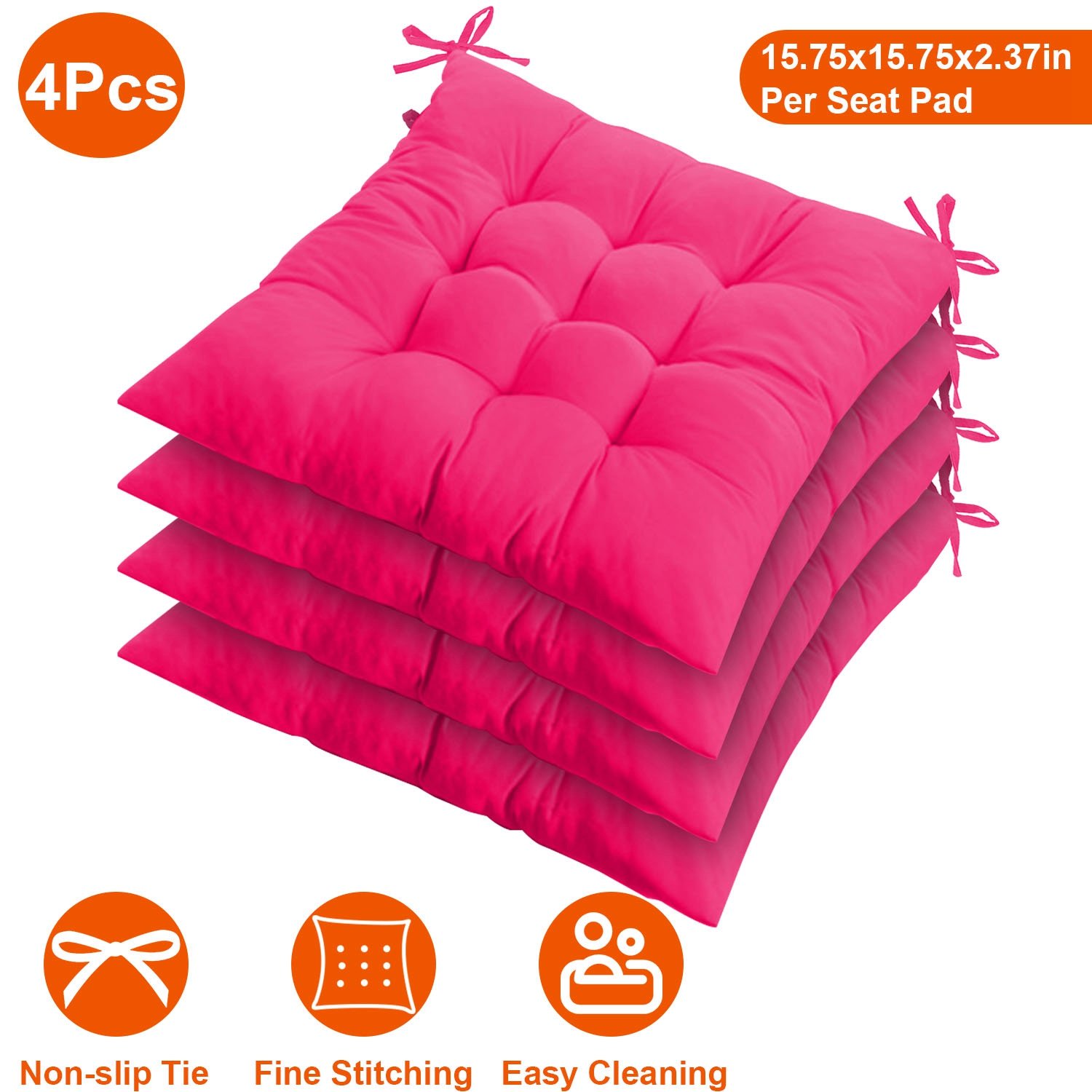 4Pcs Chair Cushion Pads Pillow 15.75x15.75x2.37in Soft Tie On Square Sitting Mats For Home Office Car Sitting Travel