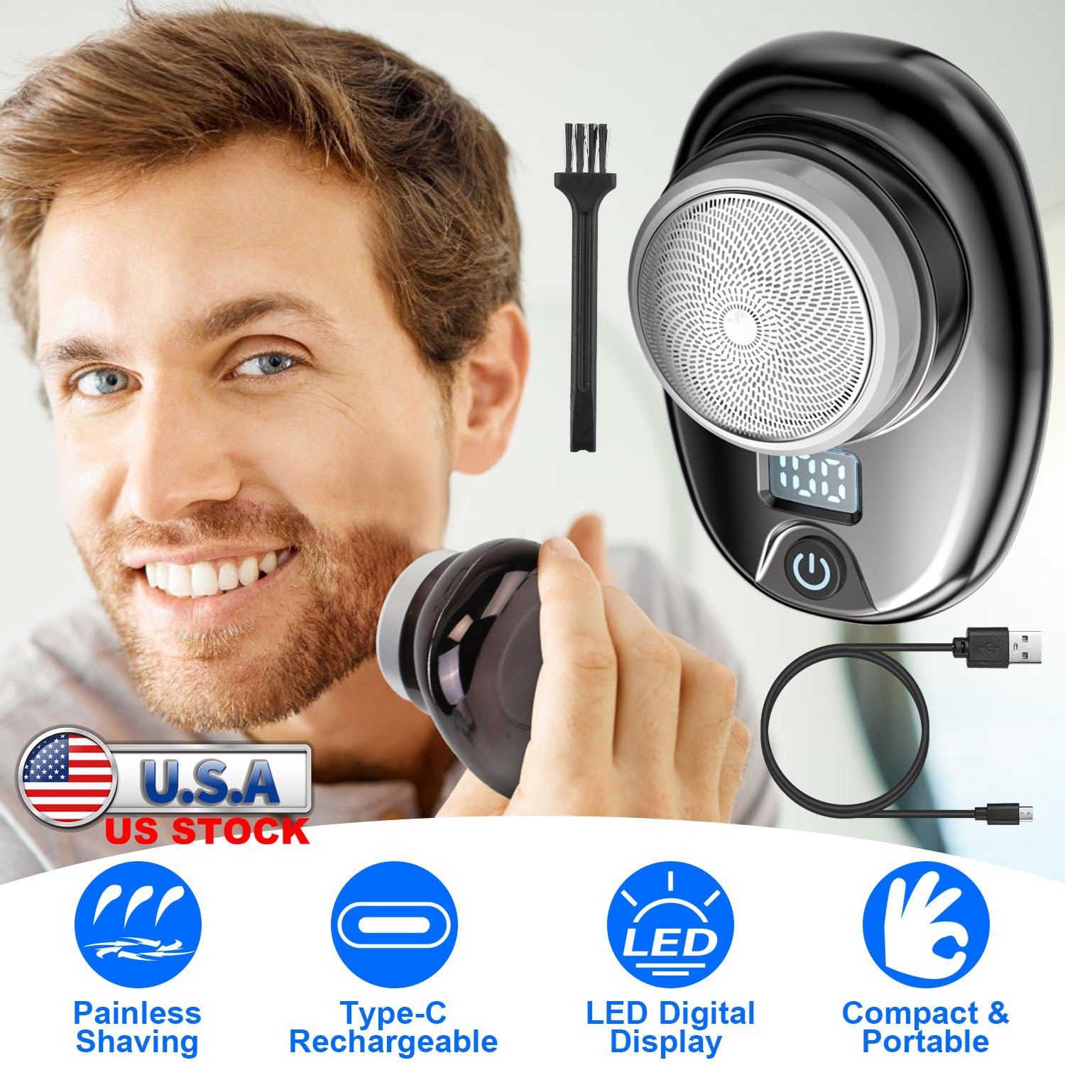 Our electric men\'s shaver features 6 sharp blades under an ultra-thin steel net for precise and painless shaving. Powerful and low power-consumption motor ensures quiet operation. This compact and portable shaver weighs only 0.17lbs and measures 2.95x2.16x1.57in in size, making it easy to store in your pocket or bag for home, travel, office, or car use. Type-C rechargeable battery is convenient to recharge via laptop, power bank, adapter and more. Available in 3 different colors, this portable electric men shaver is an ideal gift to show your love and concern for your father or lover in special days.