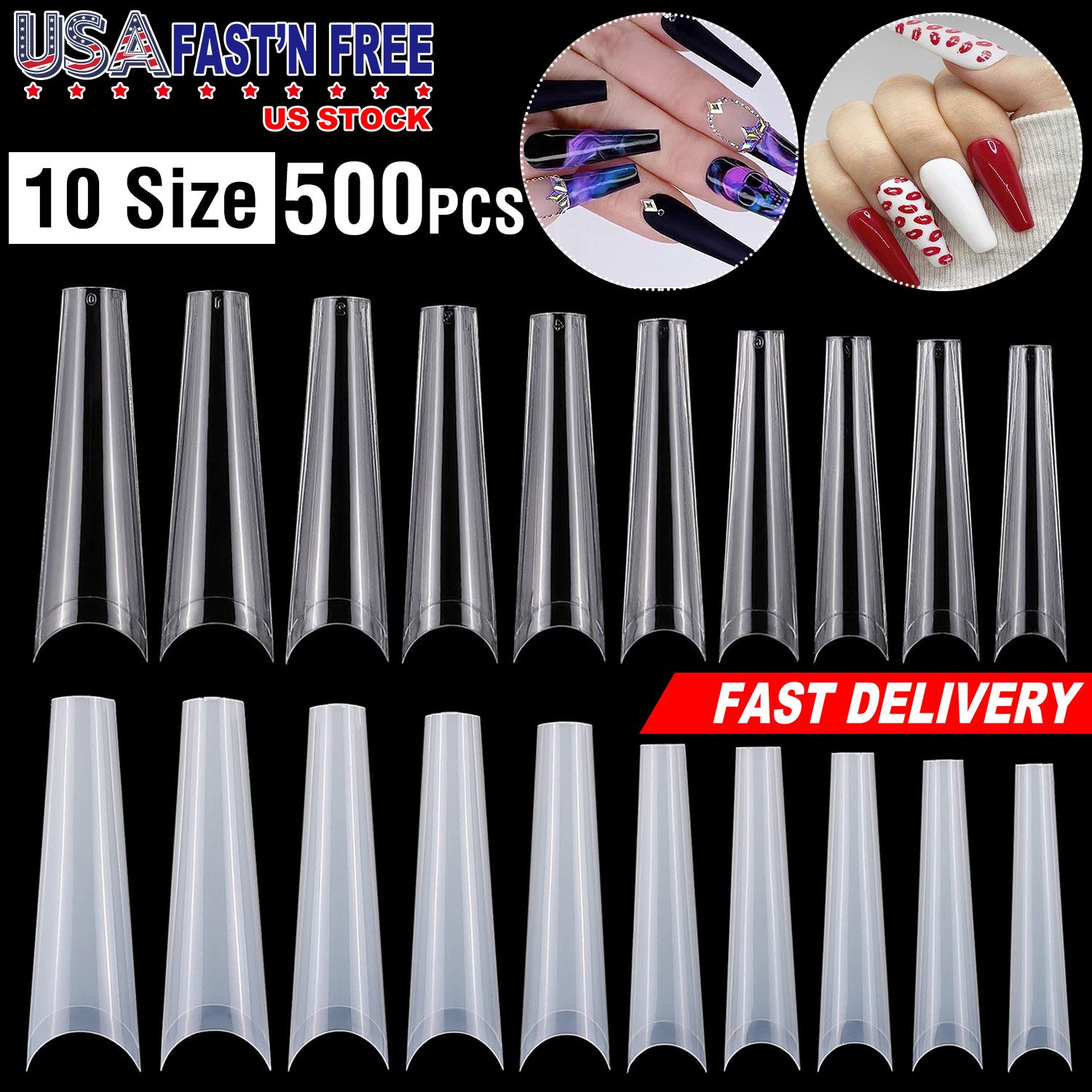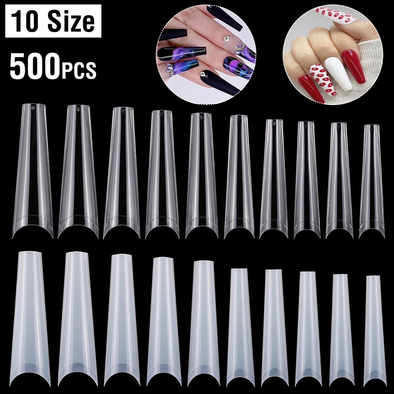 500Pcs False Nail Tips C Curve Half Cover French Nails Extra Long Fake Finger Nails For Nail Art Salons Home DIY 10 Sizes