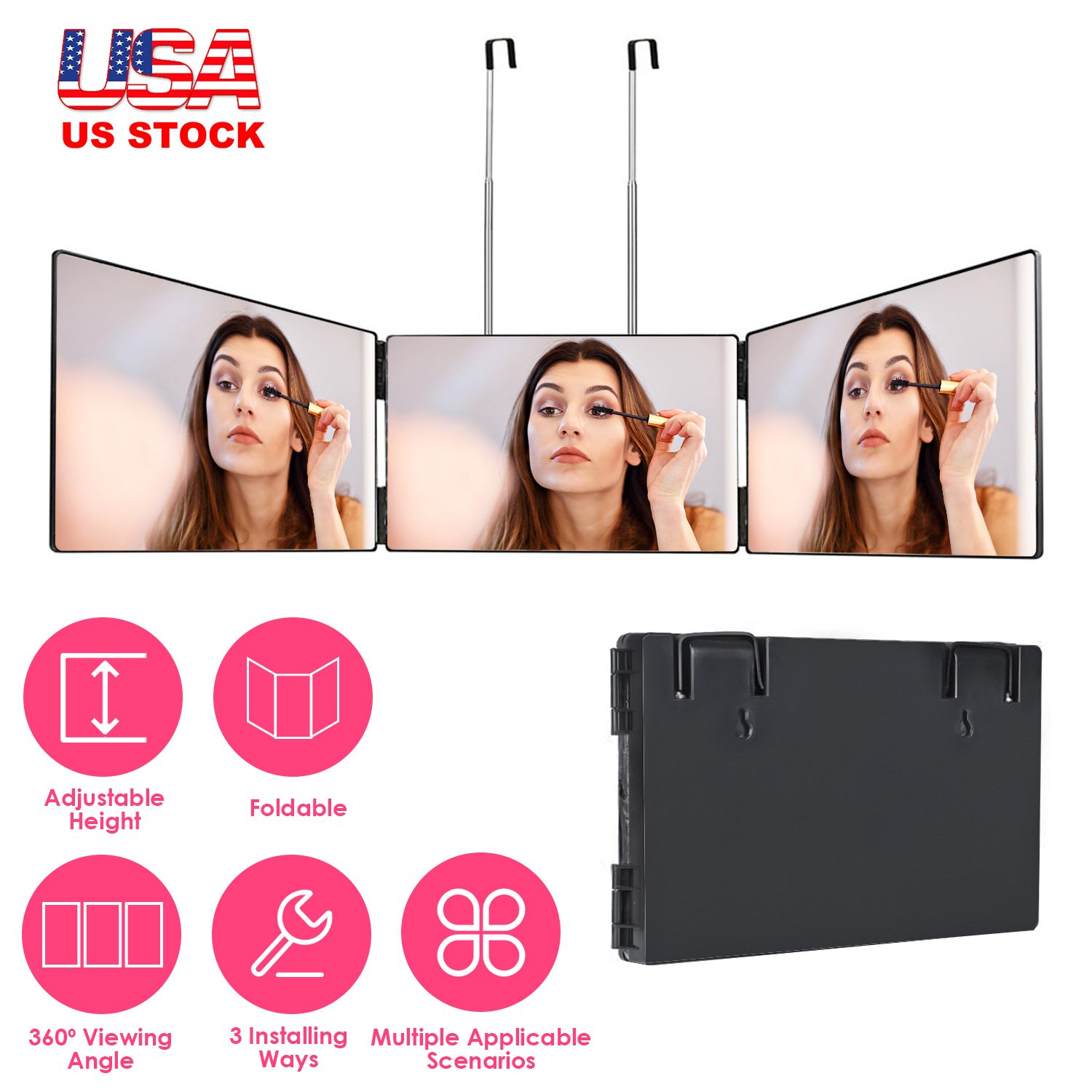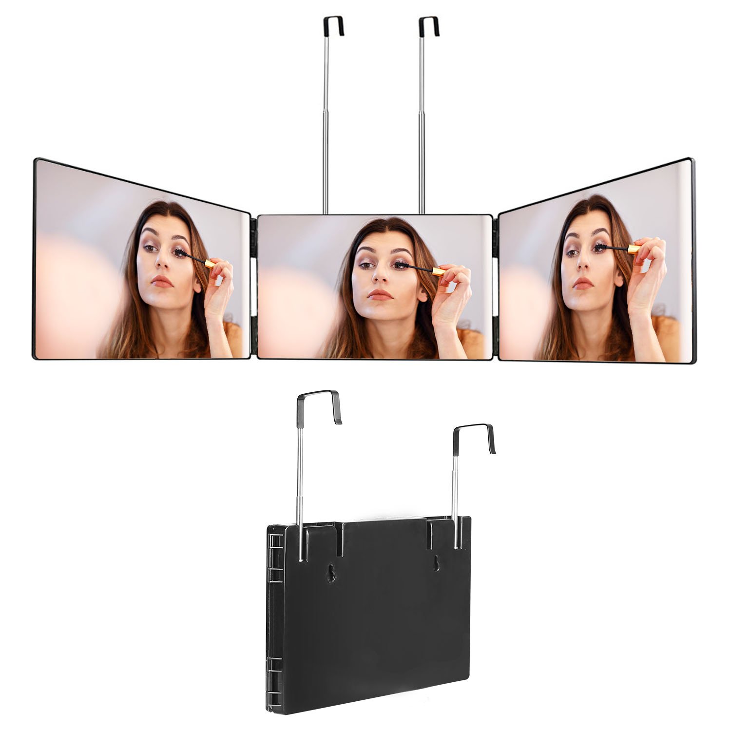 3 Way Mirror with Telescopic Hanger Tri-fold Mirror Personal Makeup Mirror for Self Shaving Hair Cutting Dyeing Curling Braiding